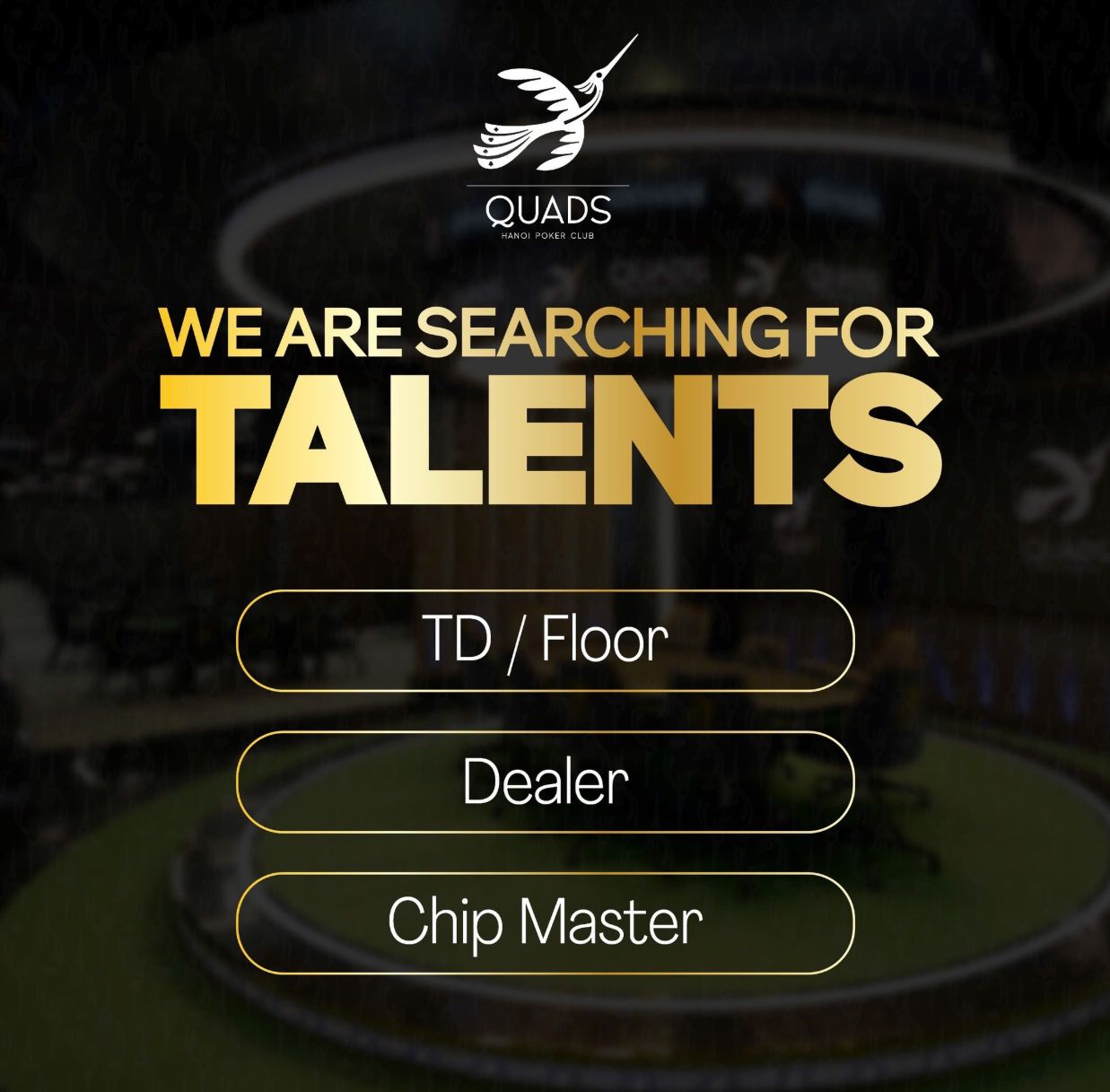 QUADS HANOI POKER CLUB MỞ ĐỢT TUYỂN DỤNG LỚN ĐỂ CHUẨN BỊ SOFT OPENING !!!